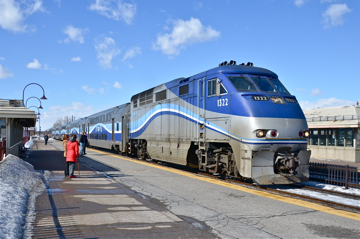 AMT 52 with AMT 1322 leading comes to a stop at Dorval Station before continuing on its journey to downtown Montreal. For more train photos, click here.