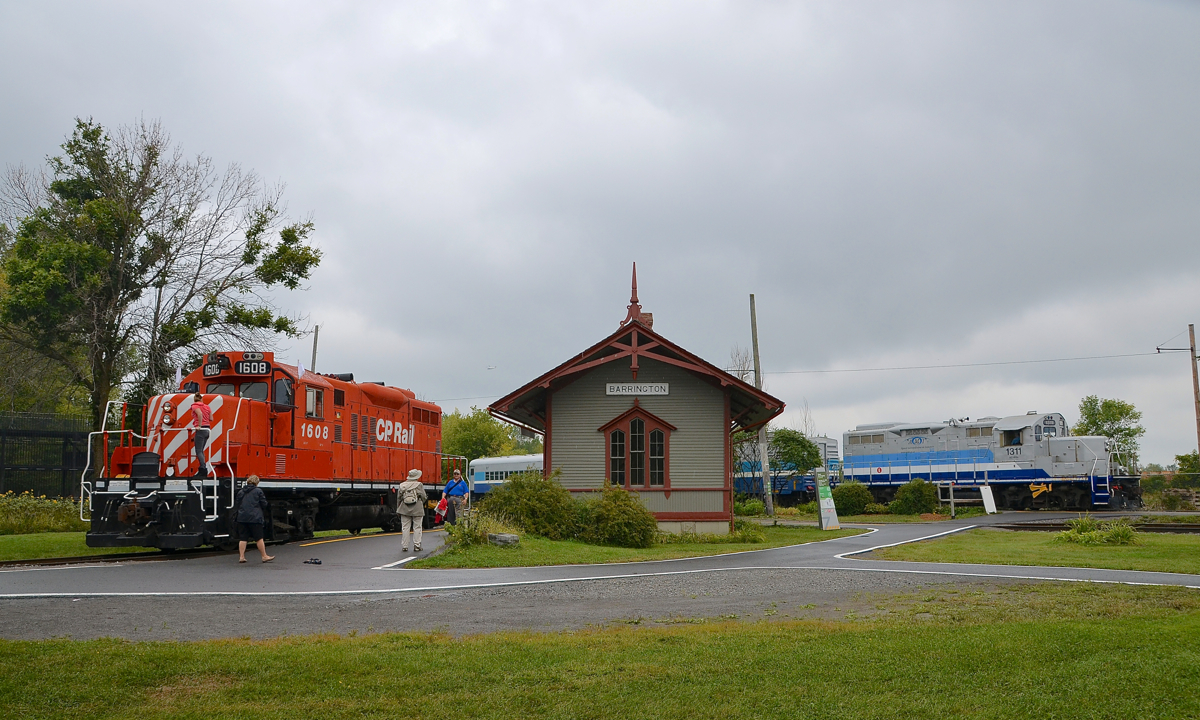 GP9's on either side of Barrington Station. GP9 AMT 1311 pushes the excursion train (with an all-AMT consist for the first time) past Barrington station as another GP9 (CP 1608) idles on the other side of the station during the first day of diesel weekend.