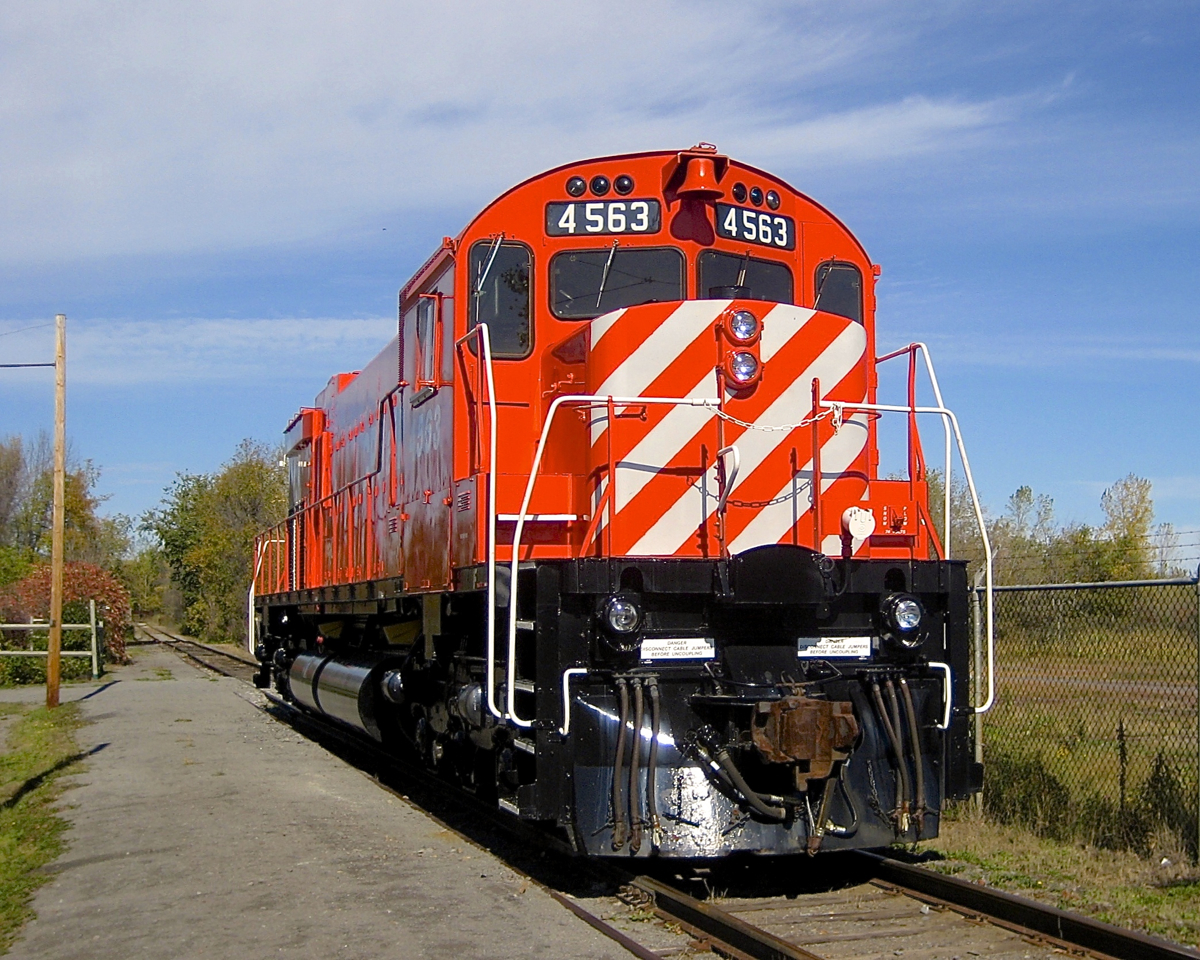 Caption: MLW M630 CP 4563 is looking brand new after being returned to Exporail in the fall of 2007. This unit had just run to McAdam, New Brunswick and back to take part in a family days event and to celebrate the upgrading of the McAdam Station.