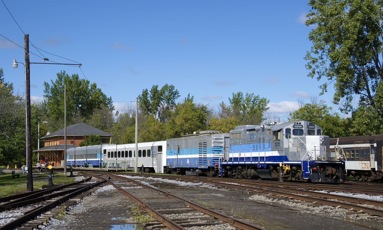 All of Exporail's preserved AMT equipment is together by Hays Station: GP9 AMT 1311, generator car AMT 603 and coaches AMT 1101 & AMT 827.