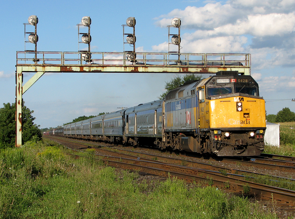 Caption: VIA 75 highballs westward on a gorgeous August evening.