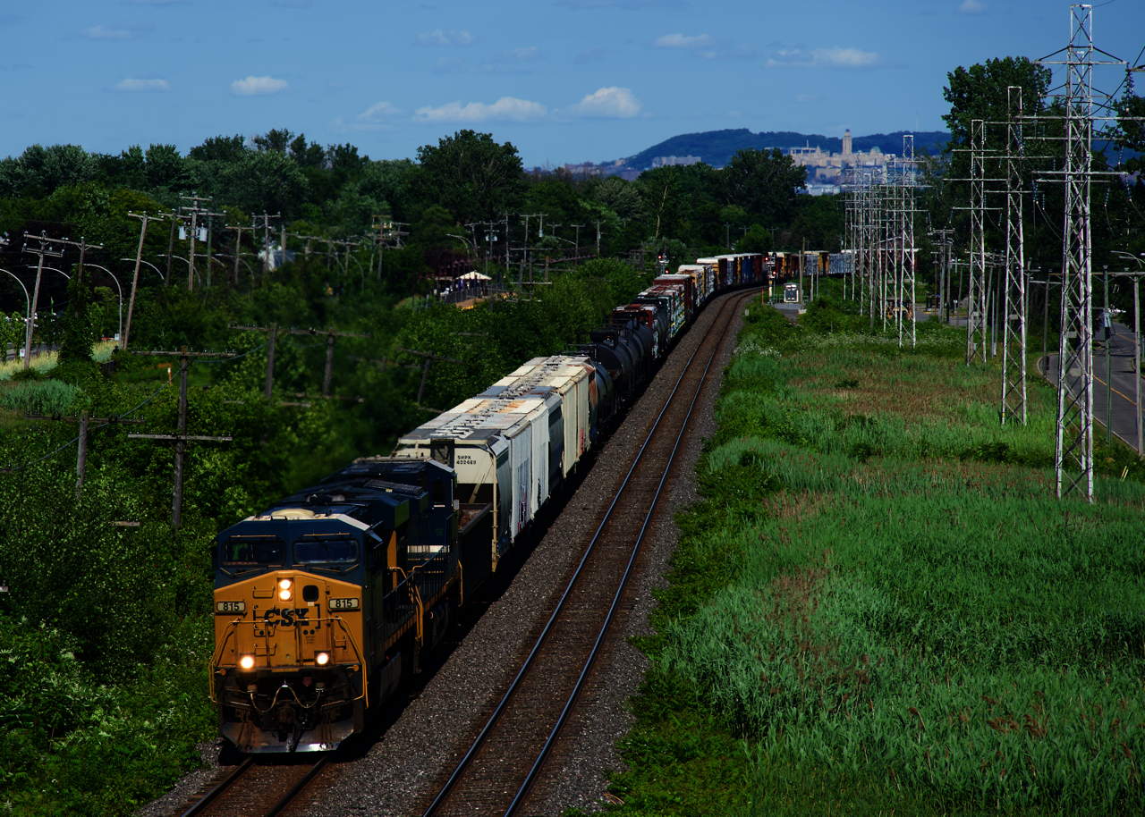 Caption: CN 327 has CSXT 815, CSXT 7212 and 91 cars as it heads west on the Kingston Sub.