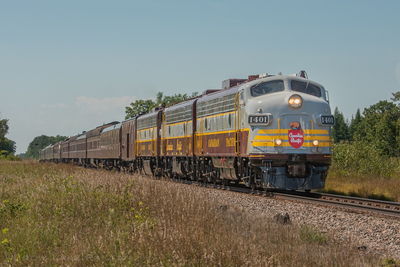 A hot summer breeze swept over the farmland outside of Smiths Falls and carried the unique horn blasts of CP 40B the "Royal Canadian Pacific" as it heads for the CN Walkley yard where it will be used for presentations relating to the women's open golf tournament. CP is the main sponsor for the event hosted just minutes away at the Ottawa Hunt Golf and Country Club.