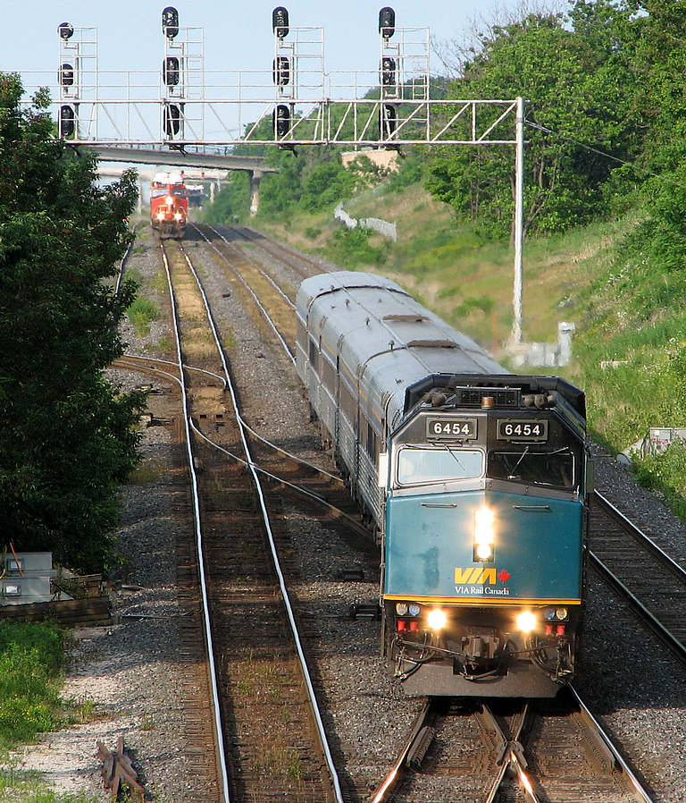 Caption: VIA 75 crosses over in front of CN 399 at Snake.
