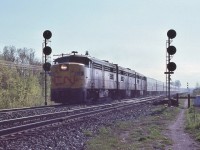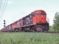 Extra 6060 west, with seven blue with yellow stripes CC&F cars, Ottawa to Toronto via the now lifted Smiths Falls subdivision - at 25 mph, then onto the Kingston sub, west of Napanee the engineman let 6060 run: at 80+ mph, sounded like the Turbo !