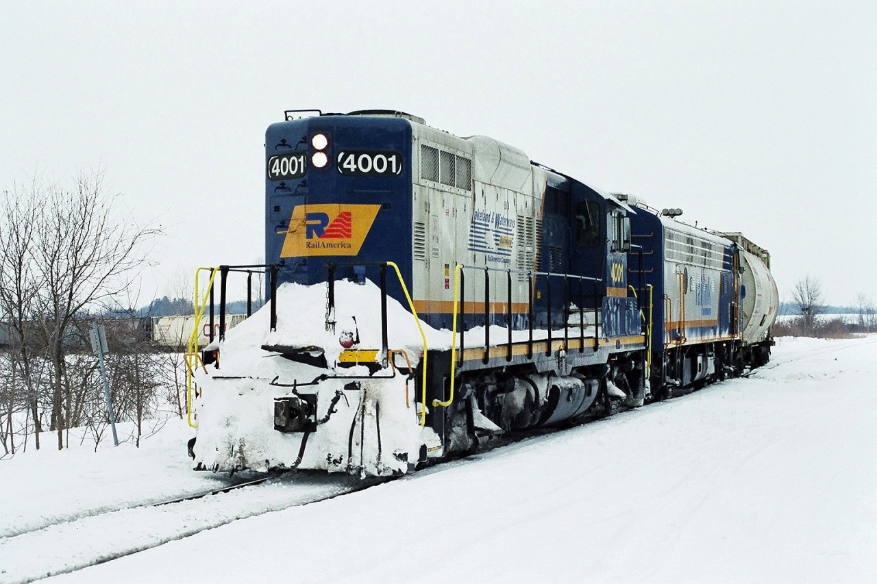 Caption: A day at a southwestern Ontario hotspot postponed. A day at Denfield Sideroad cut short, a drive was in order. Rumors abounded about the arrival of an F unit on the Goderich-Exeter. Once these lines were a staple of such units, being in the snow belt. So avoid CN, CP, and Via for the day. Luck would be on our side, first place we stop, we hear 567's. RLK 4001 was well known, as the power came into sight. A cowl carbody. A day full of mainline can't beat this. Ironically, I saw the F in North Bay before it was shopped by Ontario Northland. It went west, came to Goderich-Exeter. Now her and her sister, are in Salford, less than 15 minutes away from my home, awaiting their rebuild at their new home.