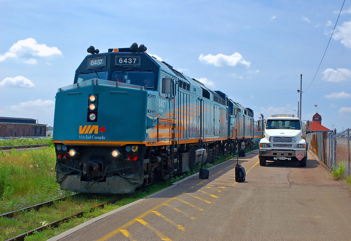 Caption: VIA F40PH #6437 on the point of the 'Ocean Limited'. Moncton, NB. Note old engine house to the left & station to the right. For more pics & video from my collection see http://northamericabyrail.info