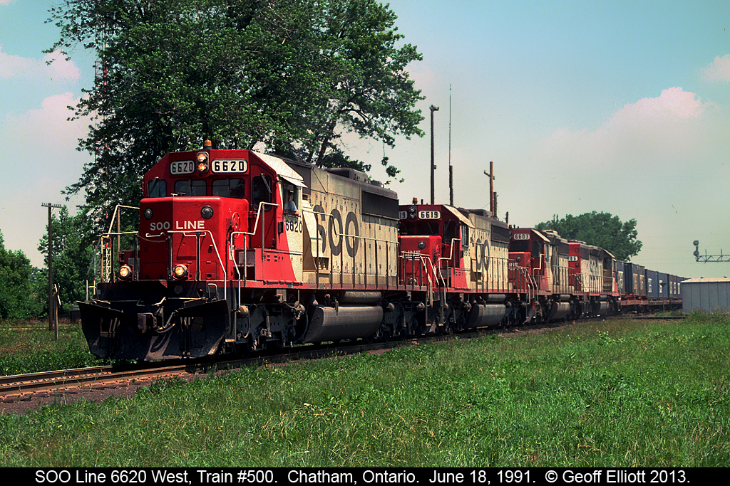The only quartet of white SOOs I ever shot was, oddly enough, on the D&H. Up at Guelph Jct in the mid-80s I remember the “Cast” train coming thru in the mid-mornings, usually with one or two white SOOs and a pair of CP SDs; at least when I got to see it. This image sure is a great catch alrighty!!!