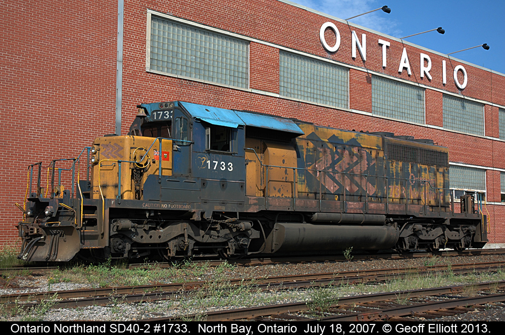 Caption: ONR SD40-2 #1733 sits outside the shops in North Bay, Ontario on July 18, 2007.