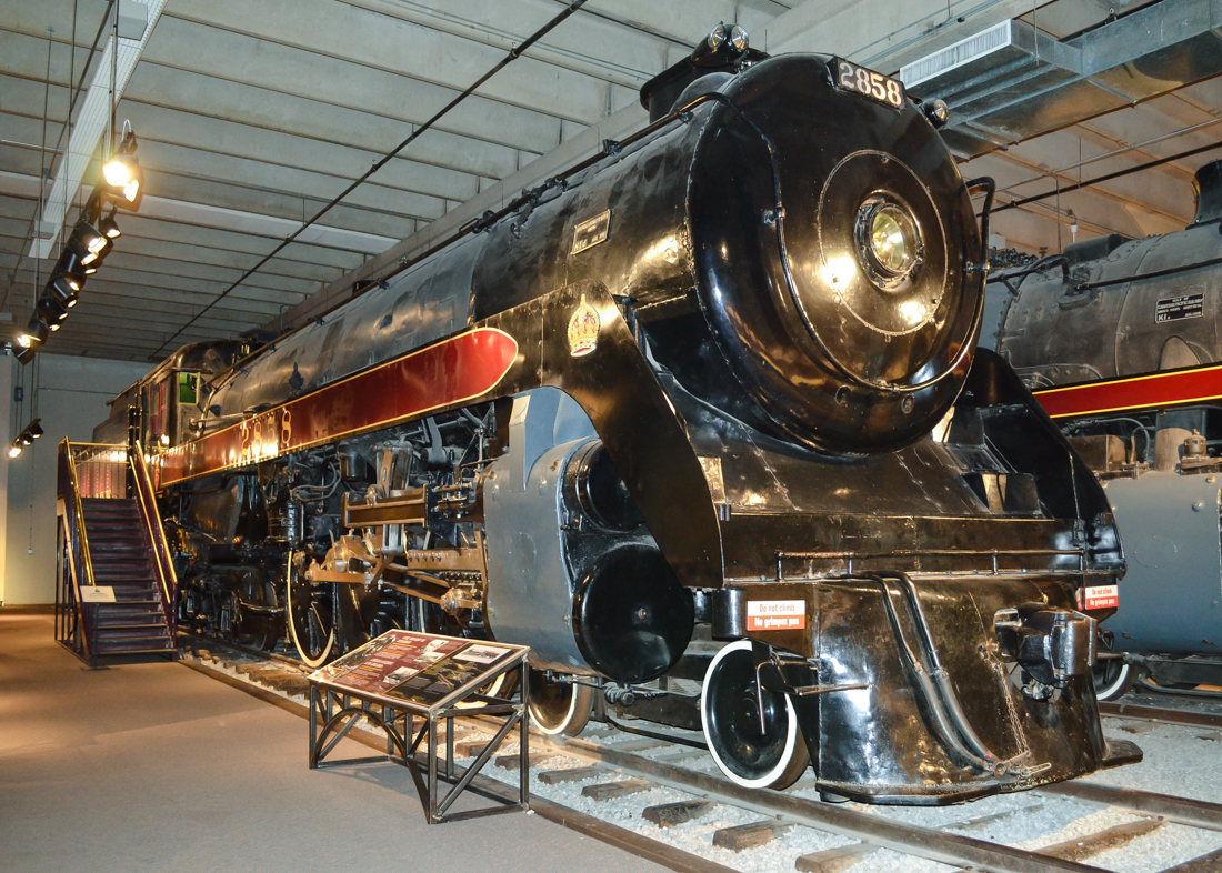 Caption: CP 2858, a Royal Hudson, is preserved at the Canada Science and Technology Museum in Ottawa. Beside it is CP 3100 (4-8-4), see a photo of it by clicking here. The cabs to both are open to the public and are very popular with children. For more train photos, check out http://www.flickr.com/photos/mtlwestrailfan/
