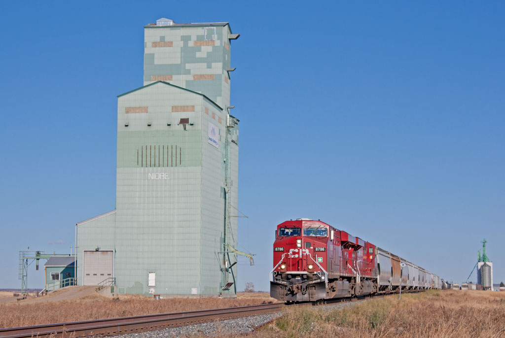 My goodness what a photograph Cam. If it was possible I would give 5 stars for this picture. Look at the immensity of the blue sky and countryside. Is this the prairies or what? Trains, blue sky and grain elevators, I feel right at home. Thanks very much for posting this.