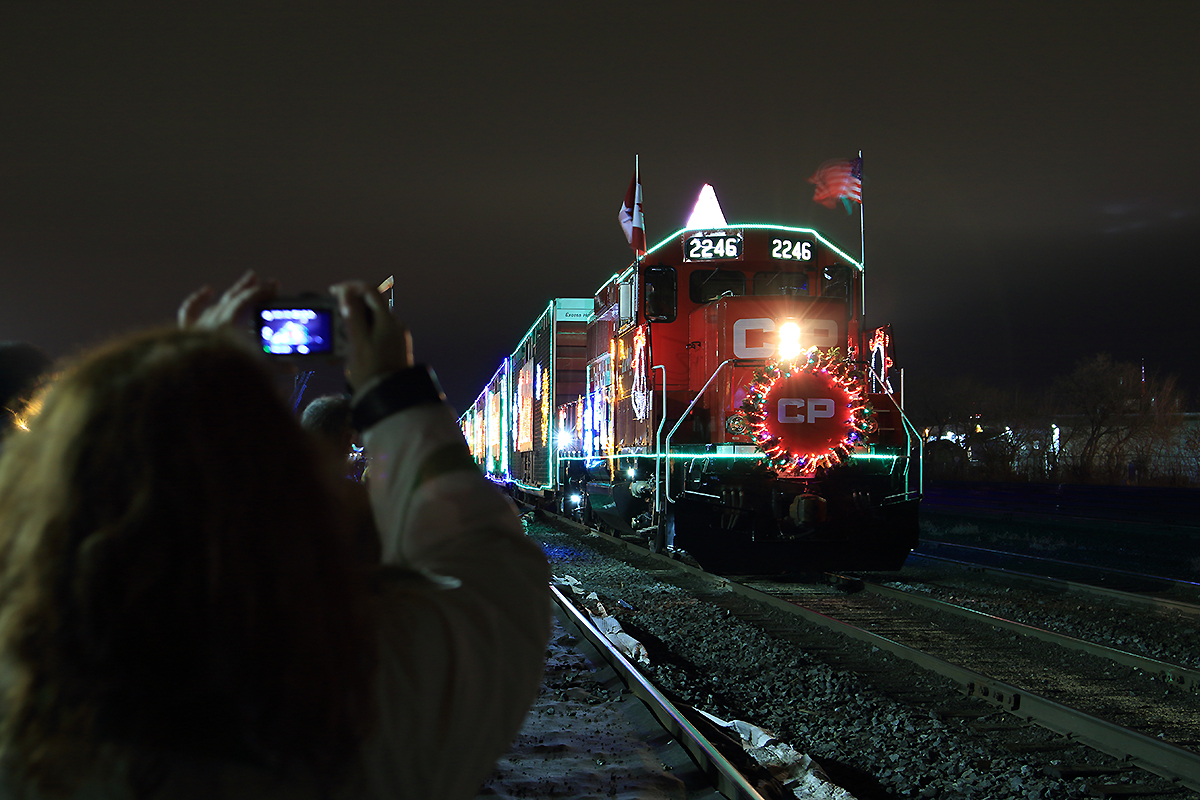 Caption: Right before she steps into frame she ask's me can I jump in to take a photo and I reply I don't mind at all. As she snaps a photo of the 2014 CP Holiday train with her iPhone and sure enough it works out perfectly a picture within a picture. Merry Christmas and Happy Holidays!!