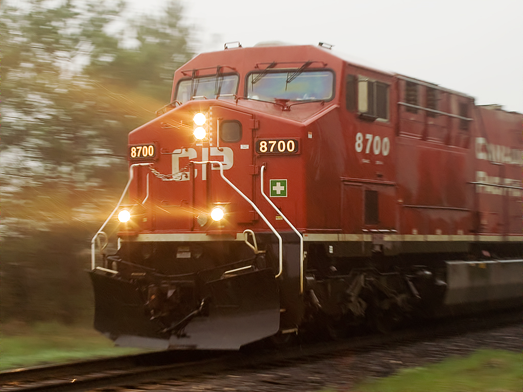 Full motion; only small bits of the cab are focussed as 8700 east slashes through the rain.