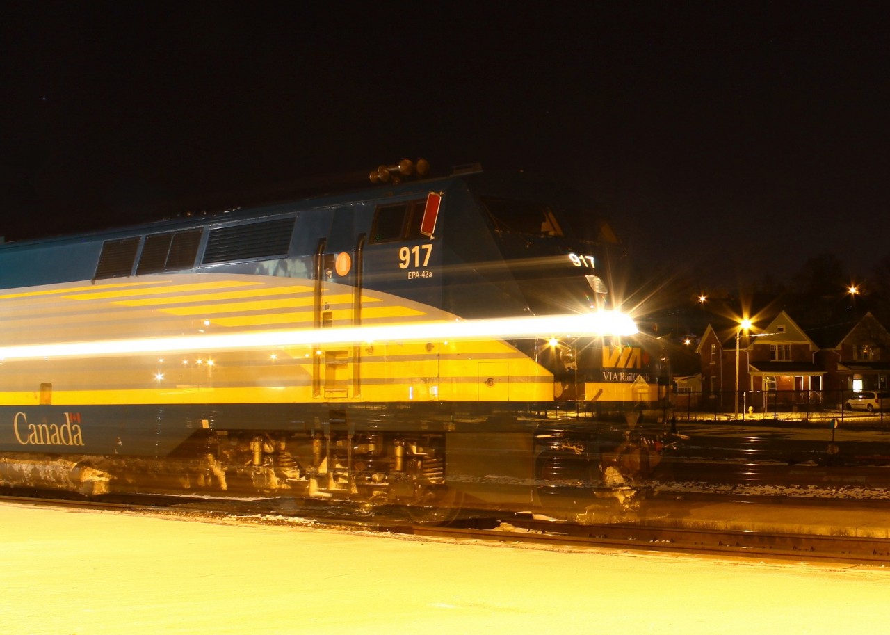 Anyways, back to the location at hand. While waiting for the Via (65 minutes late by the way: kudos to Via) CN 399 went by with a pair of GE’s “DPUed” in the train, which may or may not be significant, but it was cool. Then the Via came and I tried a “ghost” type of shot (don’t know what else to call it) of the head end pulling into the frame and (hopefully) stopping perfectly inside the frame (this one was close enough-well, I’ll let you be the judge of that). Stay warm out there!