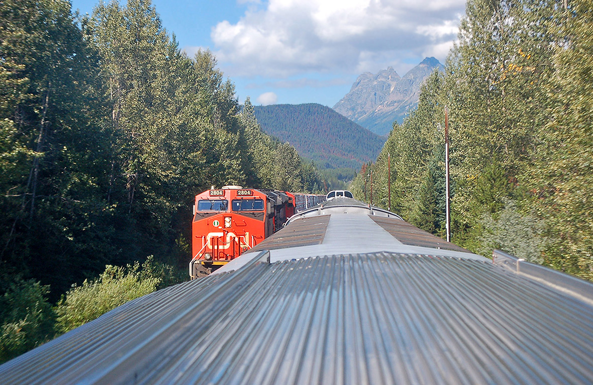 Caption: Our Latest VIA Trip! VIA's train #1, The Canadian, thunders toward a meet with a freight led by CN ES44AC #2804, with Mount Fitzwilliam in the background. This photo is from the latest trip my wife & I took in Prestige Class on the 'Canadian' from Toronto to Jasper, AB to visit Jasper & Banff National Parks, the Banff Springs Hotel and various preserved railway equipment in Alberta & British Columbia before continuing on the train in Sleeper Plus Class to Vancouver. For more pics & videos from this trip visit my webpage at http://northamericabyrail.info/a-trip-on-via-rails-canadian-2017-toronto-on-jasper-ab-banff-ab-vancouver-bc/ Also, the trip overviews on my site now include links to not only rail services like VIA but connecting transportation, rental cars, hotels & attractions to help those thinking of planning a similar trip. Cheers, Pete