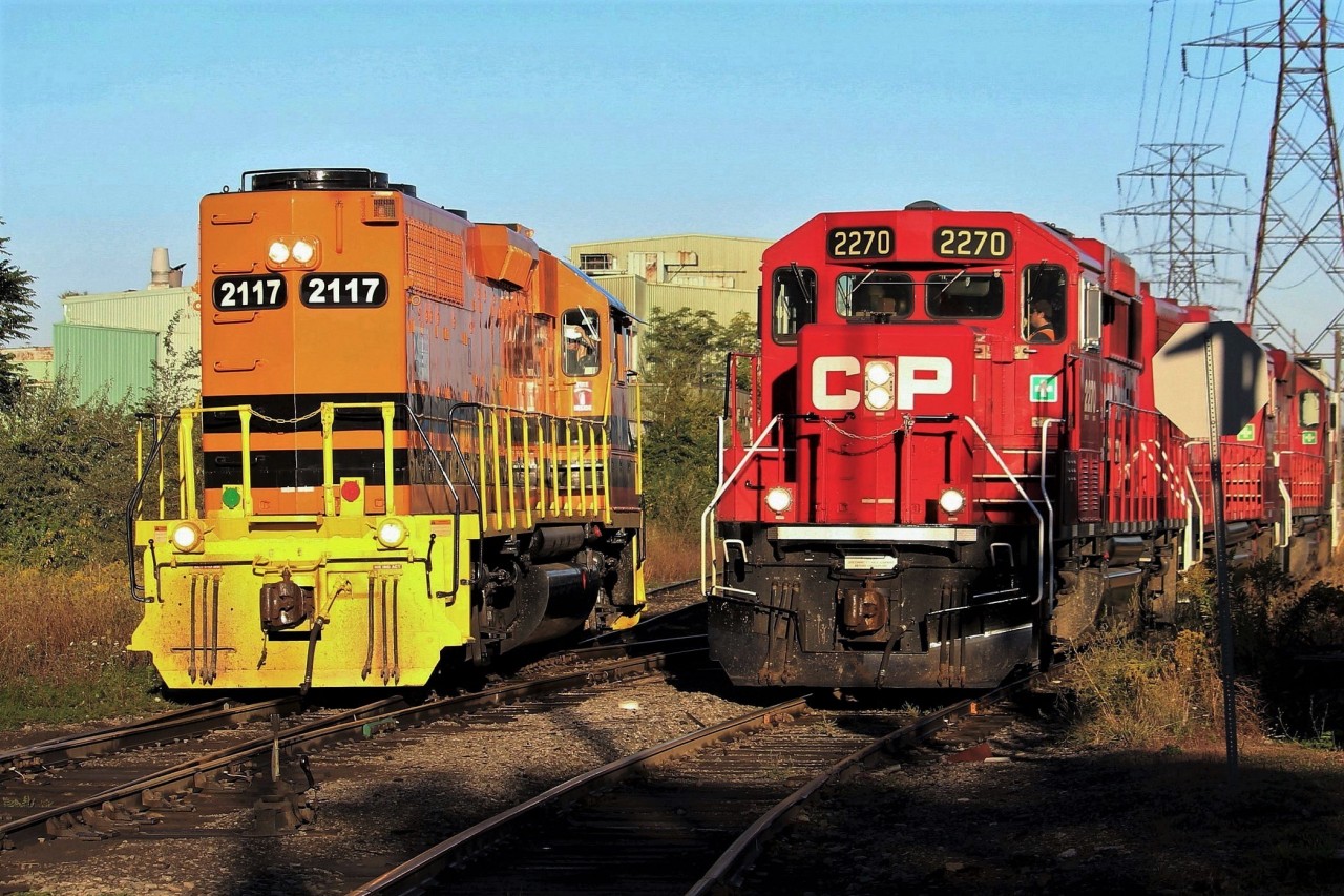 Caption: Planned to spend the entirety of the 29th railfanning. Went out that morning, grabbed a coffee, and got going just in time for the lighting to start getting nice. First stop was the industrial area, starting around Bunge and working eastward. Stumbled upon SOR and CP both working the interchange. 2117 had been out of service for some time and only recently returned in the days before this shot. If you look closely, it looks like the engineer in 2117 is either hiding from the low morning sun or my camera. Or both. From here, 2117 would run long hood/light power to NSC where it lifted some SPMX hoppers (for Shell I believe) and CN centrebeams before returning to this area to double its train and head back to Stuart. The Belt Line job headed onward towards Strathearne. Seems to be pretty consistent (or lucky?) that I have been finding CP in the Ottawa Street North area Saturday mornings around 08:00/08:30 or so.