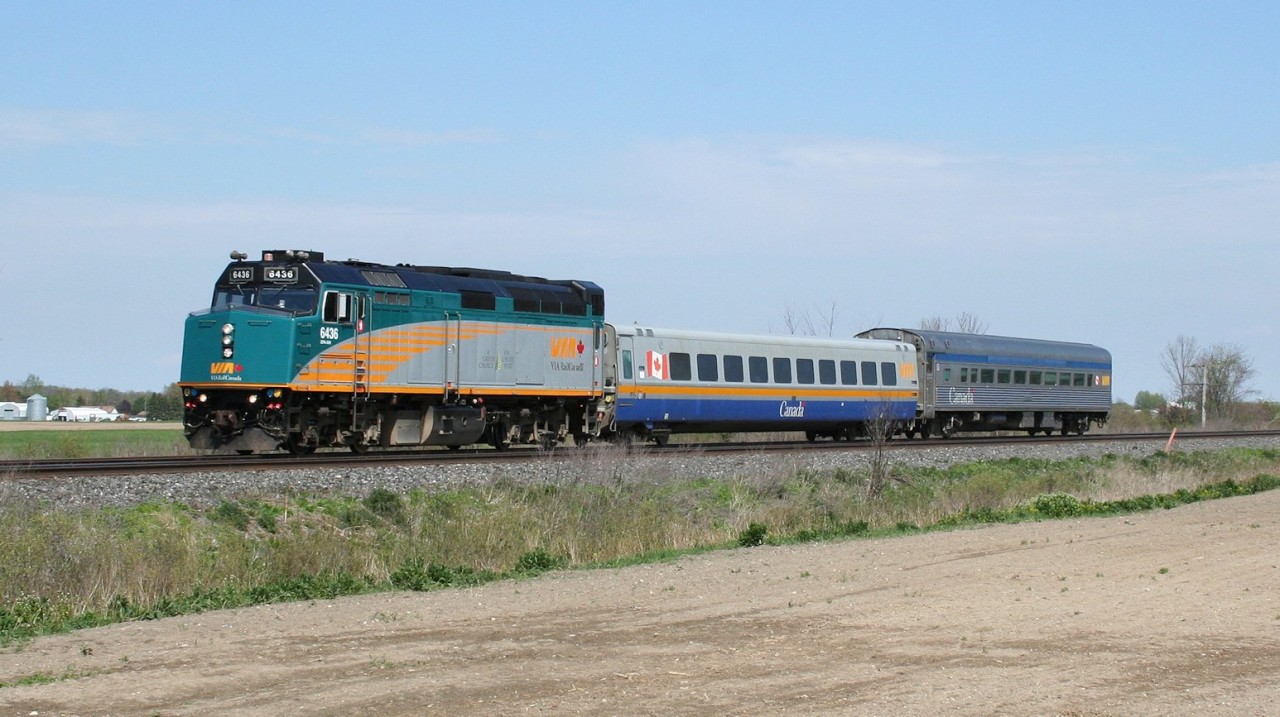 VIA 85 approaches its final destination of Sarnia with a rather unusual combination of LRC and stainless steel coaches.