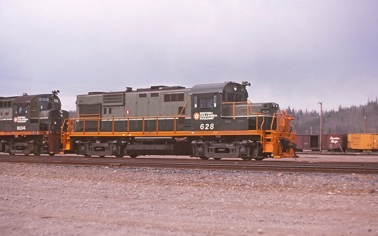 Caption: BCR 628 sporting some fairly fresh paint. This may have been inbound power from the "Mack" or "James" switcher. Note the boxcars in the background.