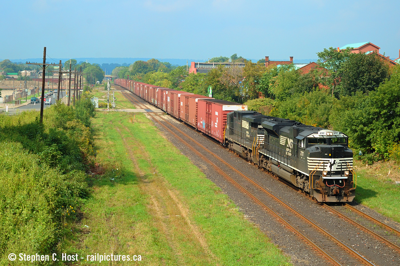 Caption: And for James Knott and the other youngins - in 2006 we knew NS was on their last legs in Ontario and many of us made sure to photograph it, the only thing was both trains ran EARLY and arriving trackside 0800 was about as late as you could try for both around Bayview to get at least one of them. (and if you tried Ingersoll or Port Robinson, subtract an hour!) NS 327/8 was a hot automotive train designed to get cars to/from the Buffalo Stamping Plant (off the Buffalo Southern Railway, now B&P) to St. Thomas Ford plant and timing was everything apparently. If there were no cars it ran anyway, light power or with whatever it had on hand. Around this time they started running the train as needed and cancelling trains some days, even combining them into big long monsters and things weren't as routine as they usually were. This is a regular 328 the only thing odd about it is the timing, it's 12 PM and it should have been through 4 hours earlier. There was only 3 months left at this point.