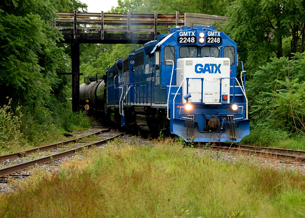 Looking down where the old L&PS connection we see the London to St. Thomas turn pulling into St. Thomas with a pair of GMTX's for power.