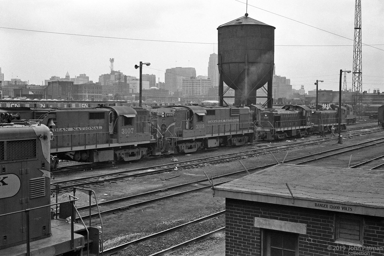 Beyond MLW RS10 units CN 3107 and CN 3109 are MLW S-4 CN 8145 and GMDD SW1200 CN 7025.