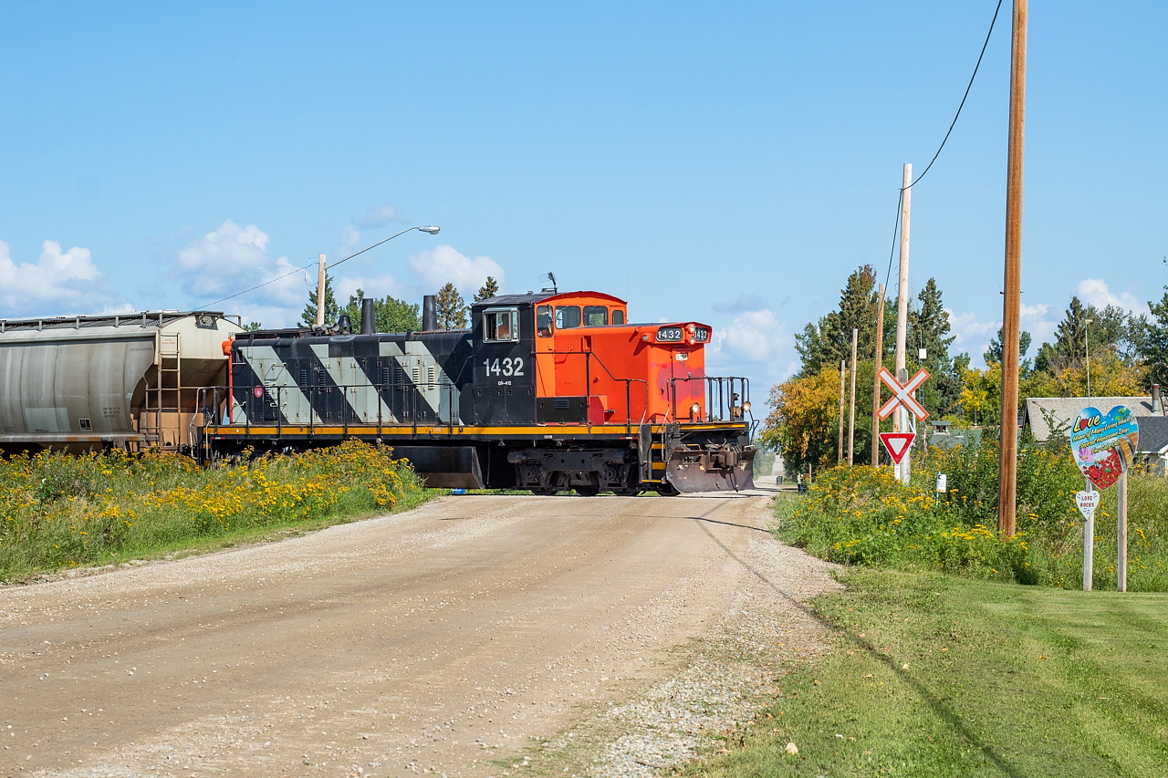 Caption: With February 14 fast approaching I figured what better place to upload a shot from than the town of Love, Saskatchewan. I was chasing the Torch River from Choiceland to Nipawan and they move so slowly that it was pretty easy to scope every crossing, yet alone town, along the way. When it came to the town of Love, there wasn't much to be had in the way of angles and I probably would have moved along without shooting here if not for the town sign, with not one but two hearts - how fitting. I figured this was unique enough to warrant including in a shot so I stuck around. Not much happening in town here - a couple dozen houses and a post office. Quaint place to say the least, and the locals are mighty friendly. Had a nice chat with the people who live on the southeast corner of the crossing. They were quite taken aback that here I was hanging out in their town waiting for a train, having come all the way from Ontario. But hey, a lone GMD-1 hauling 25 grain loads on the northernmost rail line in Saskatchewan? Love indeed, at least for this guy.