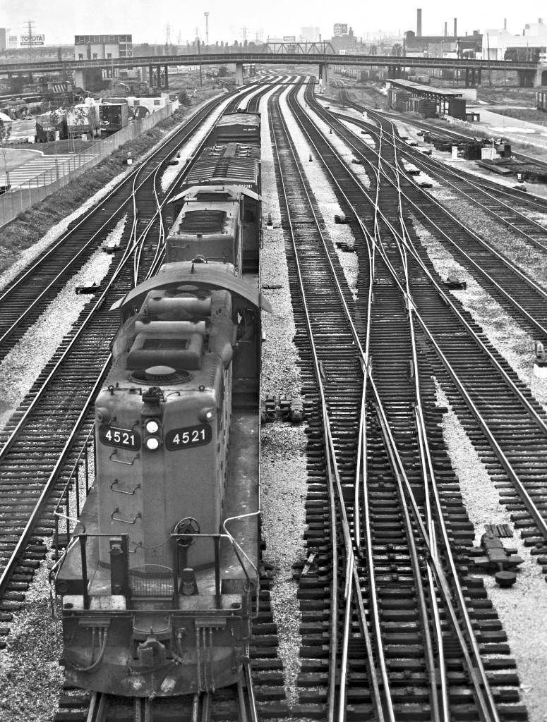 If I recall correctly this image was captured in the summer of '76 - not long after the CN Tower first opened. Built in December 1956, GP9 #4521 was rebuilt as GP9RM in '85 and renumbered to #7007.