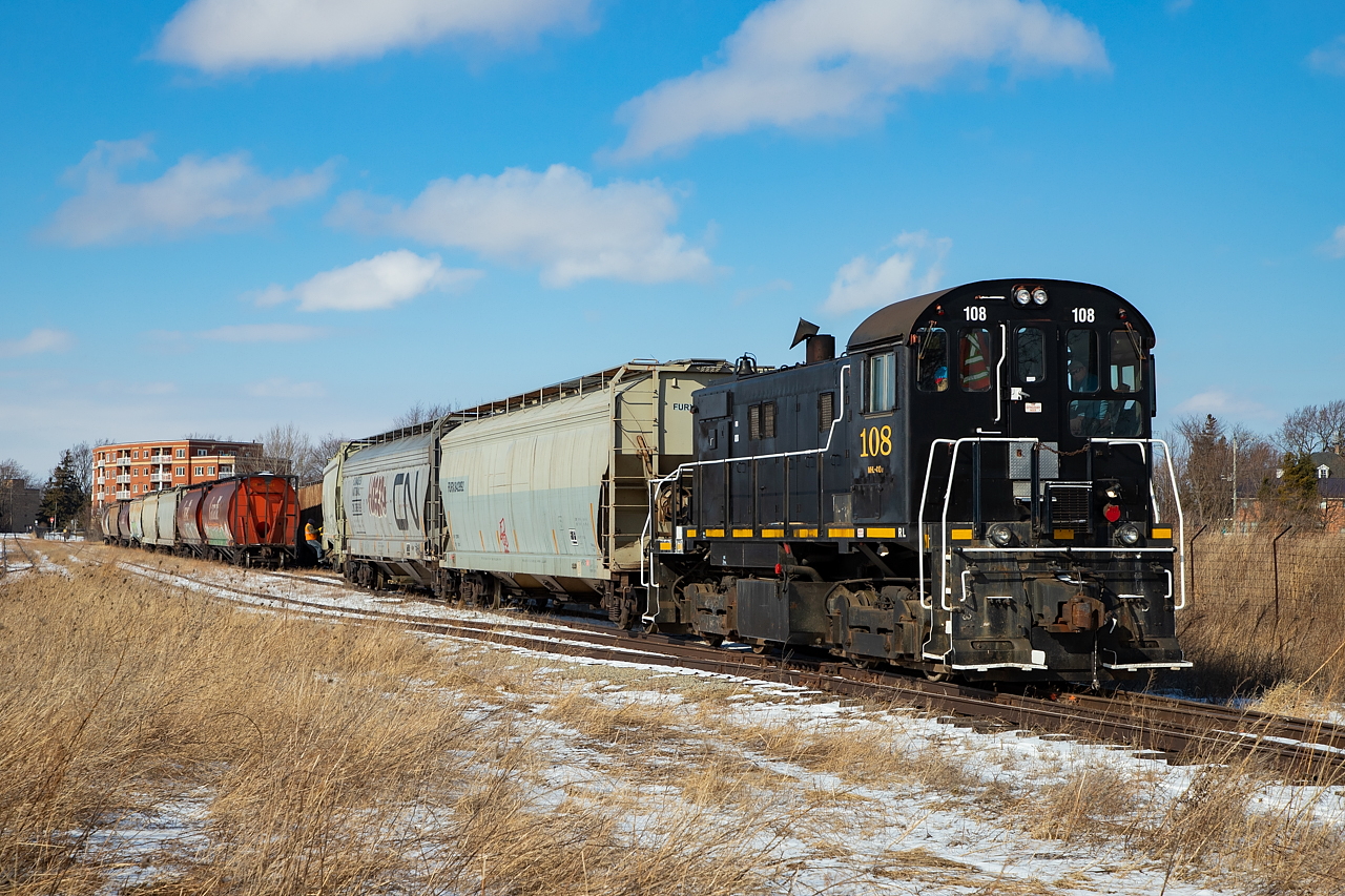 When I submitted this I’d neglected to realize Arnold had just posted a shot from many years prior of 108 in Port Colborne on it’s way to ADM, seen here: http://www.railpictures.ca/?attachment_id=44550
