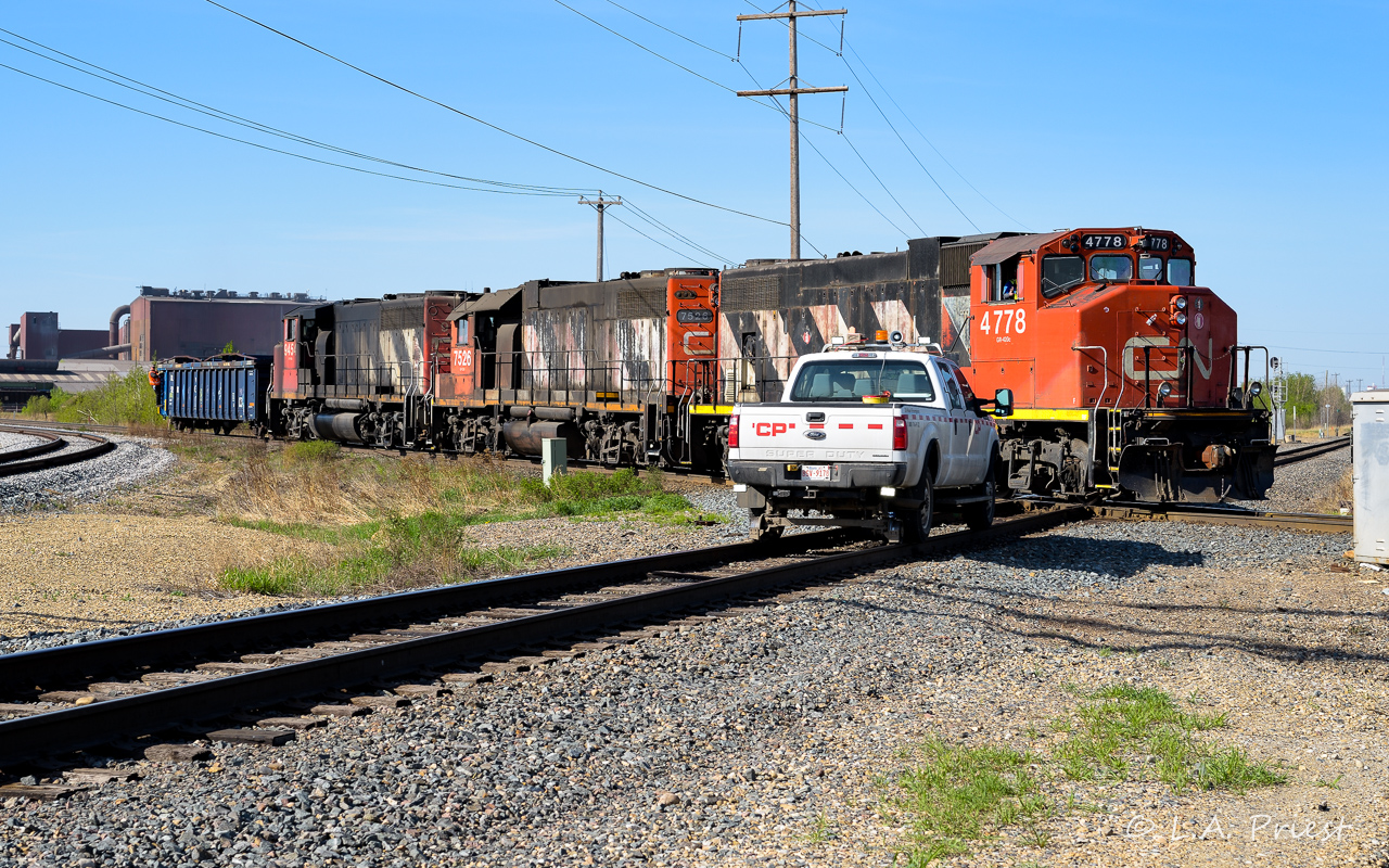 Having a tough time thinking of an instance where CP units or train would be within the bond/interlocking for a photo. This one was, see CN units, get ready to take their photo at the diamond, from out of the left a truck drives up, makes your day.