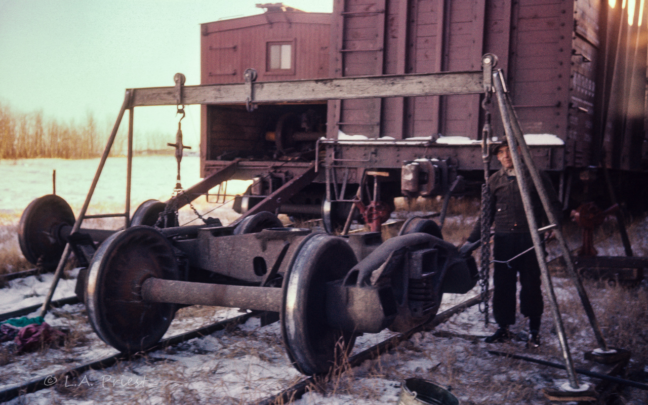 Twenty years later the same technology was still in place at CN for field wheelset changeouts as evidenced by my summer 1976 photo at Oba, ON