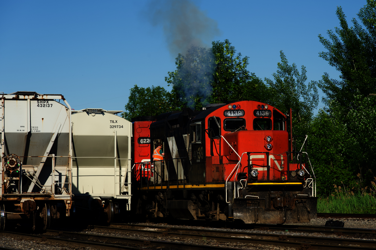 Smoke emerges from CN 4139 as CN 536's engineer starts it up at the start of his shift.