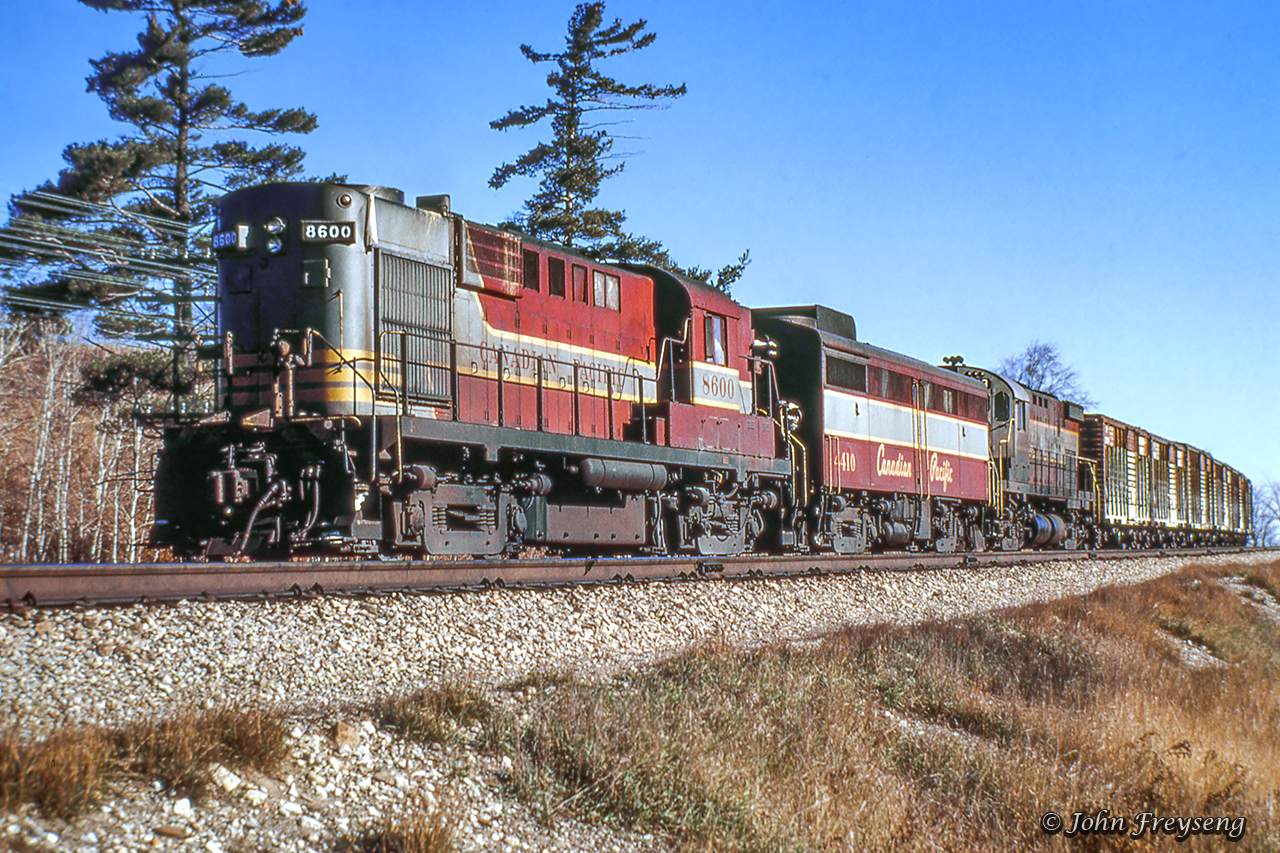 Woodstock had a stock pen that faced the “wrong” way. If a westbound had stock for Woodstock & one of the local jobs wasn’t on duty (e.g weekends) the car had to be “run around” in order to be spotted. One trip I was on an acid train with 3 GM covered wagons A-B-A. We were told to stop at Woodstock & cut off our power,grab stock out of former No 1 track on the nose of our power & spot at the stock pens. I guess the train that set the stock off was running out of time or couldn’t spot it for some reason or other. More memories of a time long gone now. I really appreciate that some like John have captured these images for all to see.