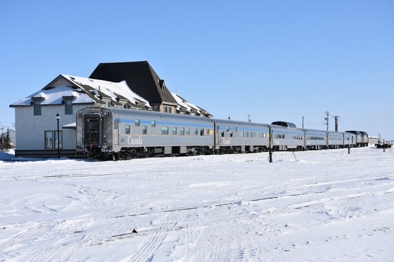 The station was open for train arrival then closed for the day after all arriving passengers had been picked up by their hotel or tour operator shuttles. It would re-open at 18:30 for passengers (me & two others in Sleeper Class) boarding VIA 690 destined to The Pas. The Parks Canada Museum in the station was closed the day I was in town so I could not use the warm & cozy station waiting room and facilities during my time in town.