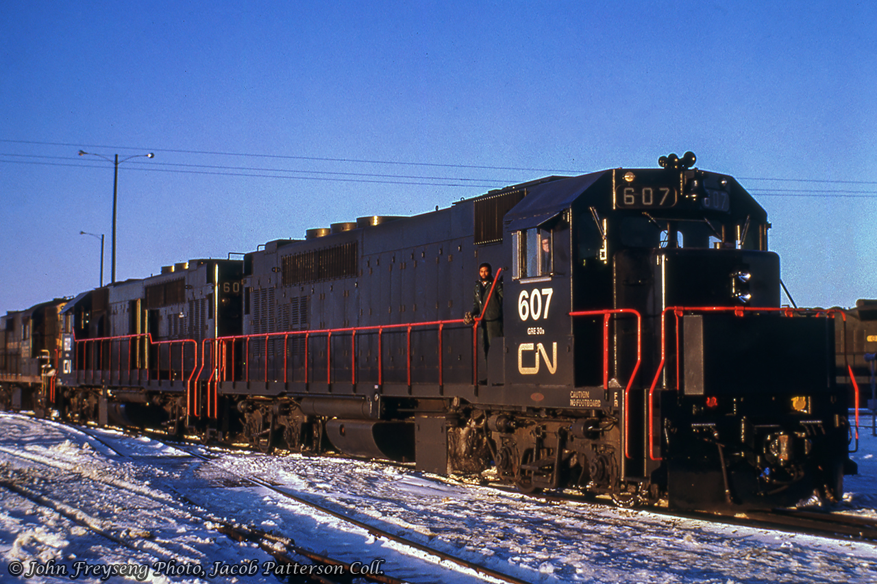 Doug Page shot these units in freight service on a number of occasions: December 1966, CN 601 eastbound at Bayview December 1966, CN 601 eastbound at Milton March 1967, CN 603, CN 607 westbound at Bayview March 1967, CN 607 westbound at Burlington