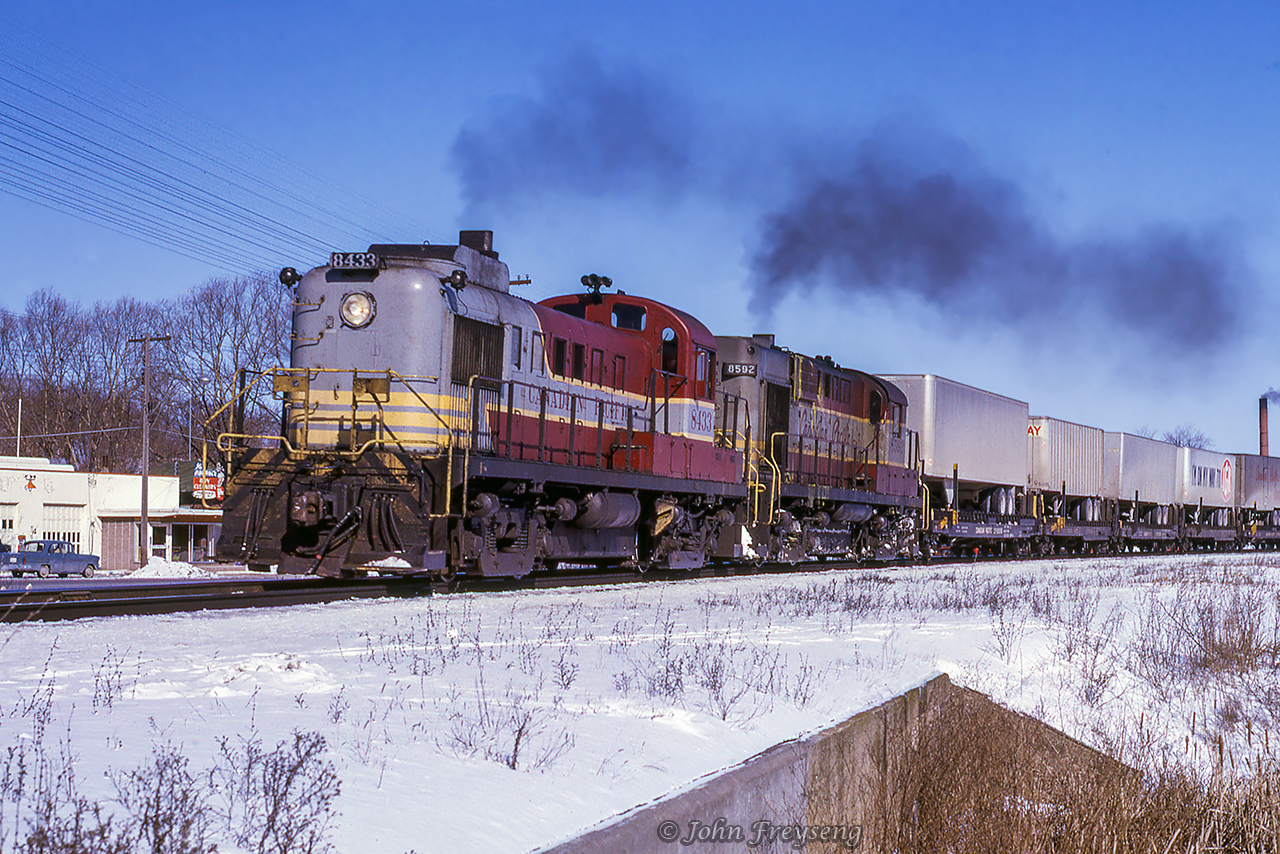 Long before the Expressway, a scheduled west bound freight trai – no white extra flags on 8433. Not sure of the train number, John