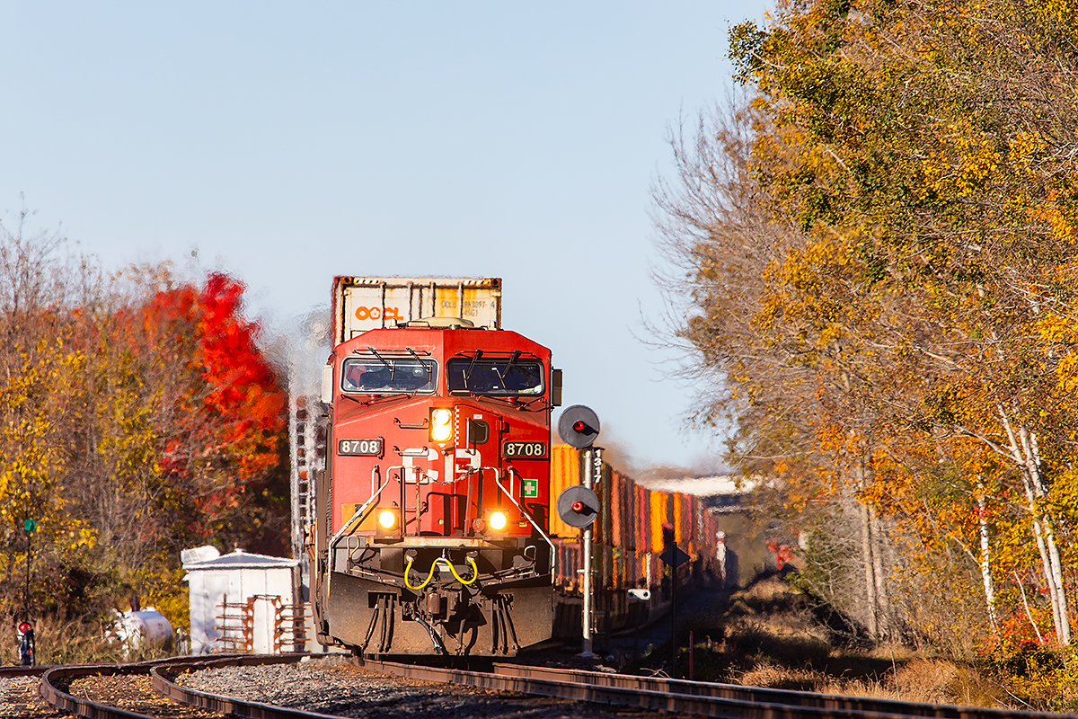 While it is shorter than the one on the left it’s just an illusion, several cars behind the locomotive at the point this photo was taken.