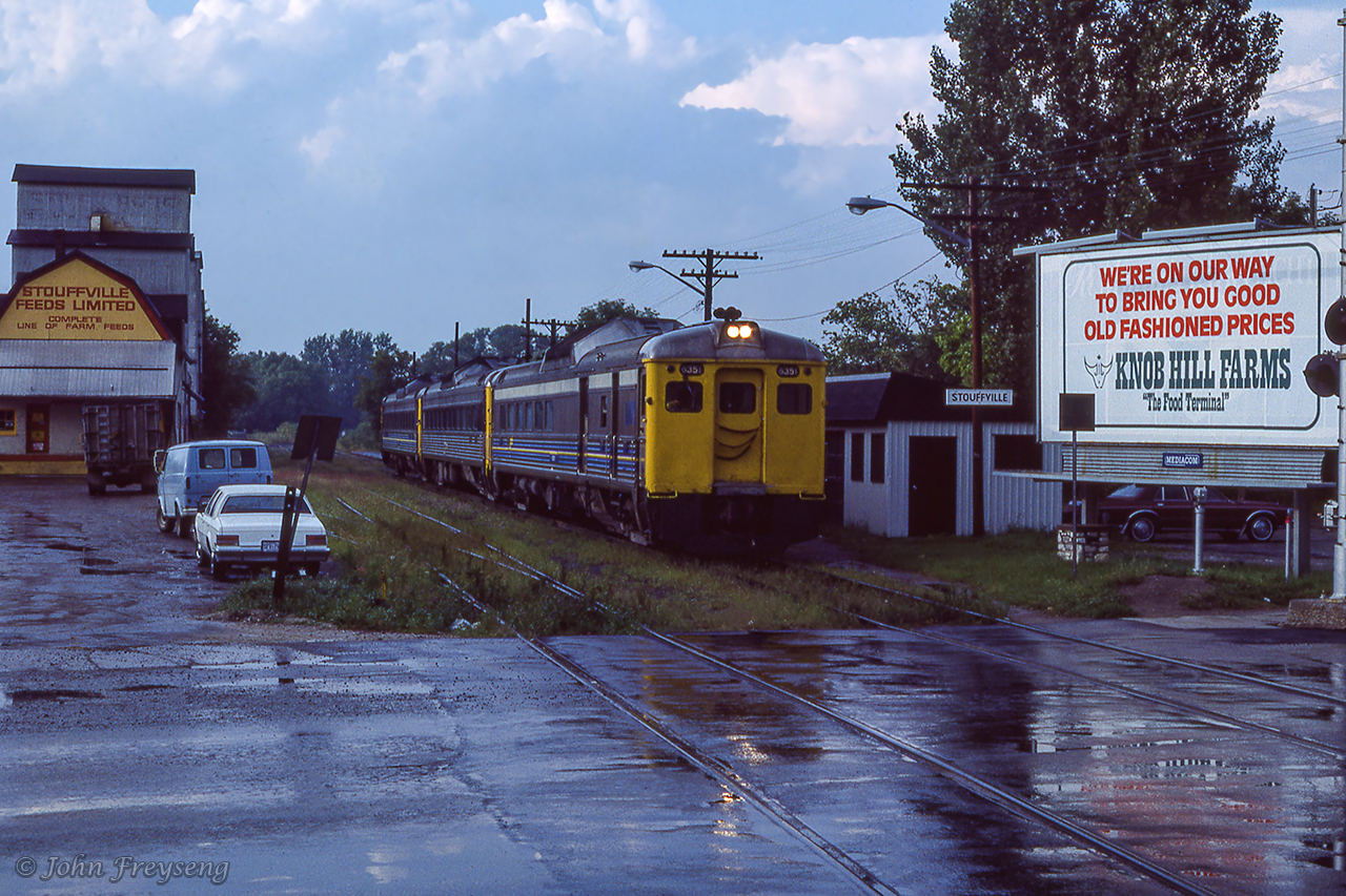 I think the nearest Knob Hill Farms to Stouffville would have been in Pickering. This is a great shot. Sleepy branchline action in the GTA.