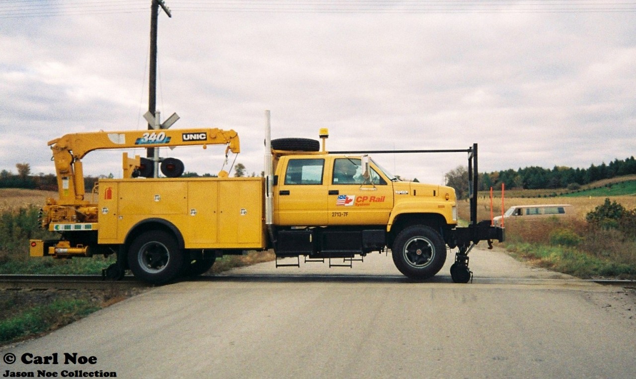 Great pic of a CP Rail System BTMF (Basic Track Maintenance Forces) hi-rail boom truck. I believe the CP vehicle number should read CP 2713-78.