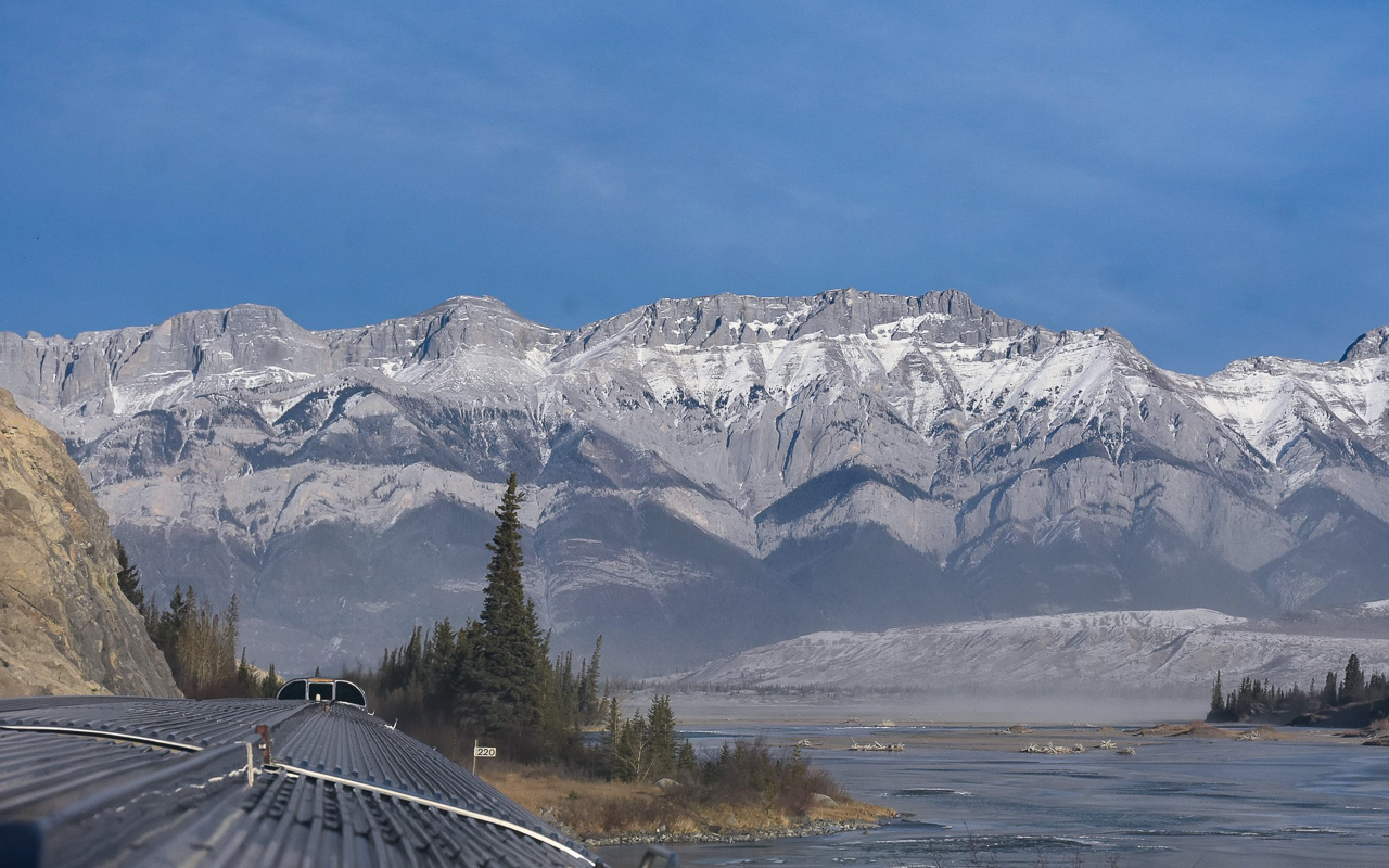 I sure lucked out with that photo. A beautiful day, extraordinary scenery, great lighting, clean windows, and a perch in the dome section of a Budd built stainless steel Skyline car on The Canadian.