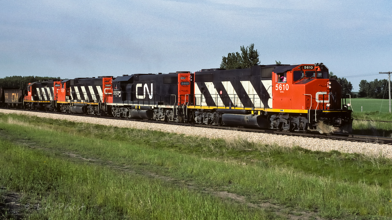 1. Thanks for complimenting my photo of CN 4810 with this great shot of CN 5610. It sure looks a lot better in your photo with the paint still in full vivid colours. Very neat that it matches your alias as well!!