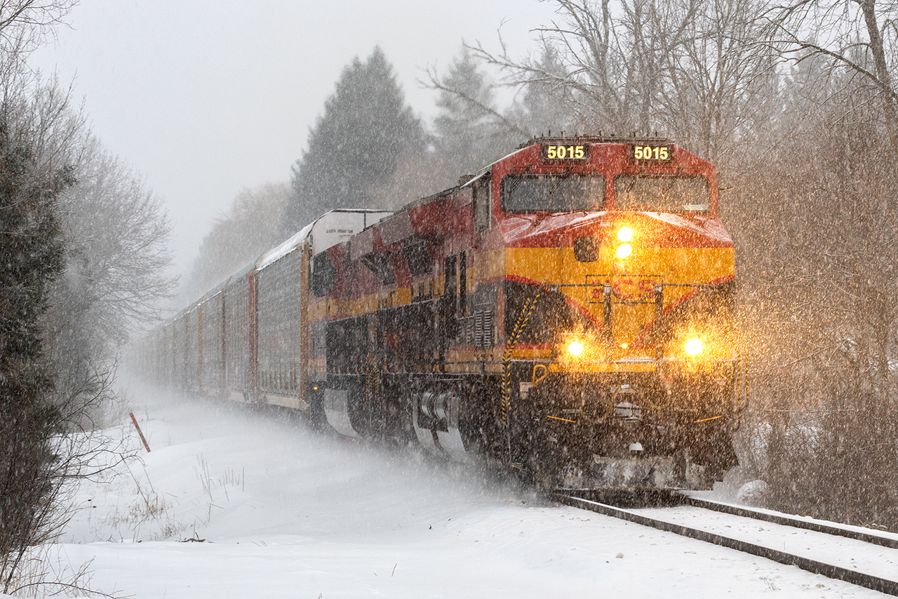 Caption: Every once in a while, CP does something really remarkable. I heard an eastbound cleared out of Wolverton on the scanner but couldn't make out the number. "Sure, let's try", and out the door I went. I have no idea how it happened but this pair of KCS Belle's had snuck through to Windsor unnoticed and had snuck halfway back to Toronto overnight. You just never know what might show up these days; especially with all the KCS trailing units and inconsistency of the need to go to Detroit where the power is wyed. If it doesn't go CP can provide some pretty interesting lead units.