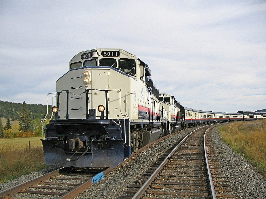 Caption: Northbound Rocky Mountaineer "Fraser Discovery" in the siding at Onward on the former BC Rail Lillooet subdivision. The train had an early morning departure 07:00 from Whistler and will terminate for the evening at Quesnel. The journey that day would be approximately 312 miles. Image taken at Onward at 15:57 and once leaving Onward would have another 79 mile run to Quesnel. A long day on the train and scenery never gets tiring.