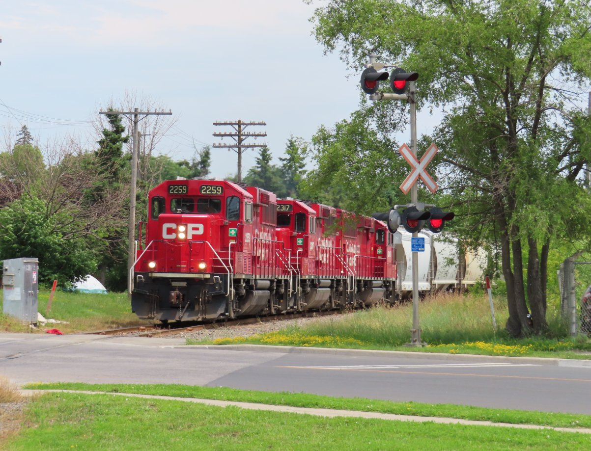 A trio of ECO units proceeds west slowly through Peterborough crossing Aylmer Street. When I was a Kid growing up here this train ran at night. Back then the power was usually a mix of four axle power, GP-35's C424's or RS-18's. One time a C&O GP-30 showed up. Back then my brother was the camera guy and film was expensive. As teenagers there were other pursuits, so there aren't any photos from those days.