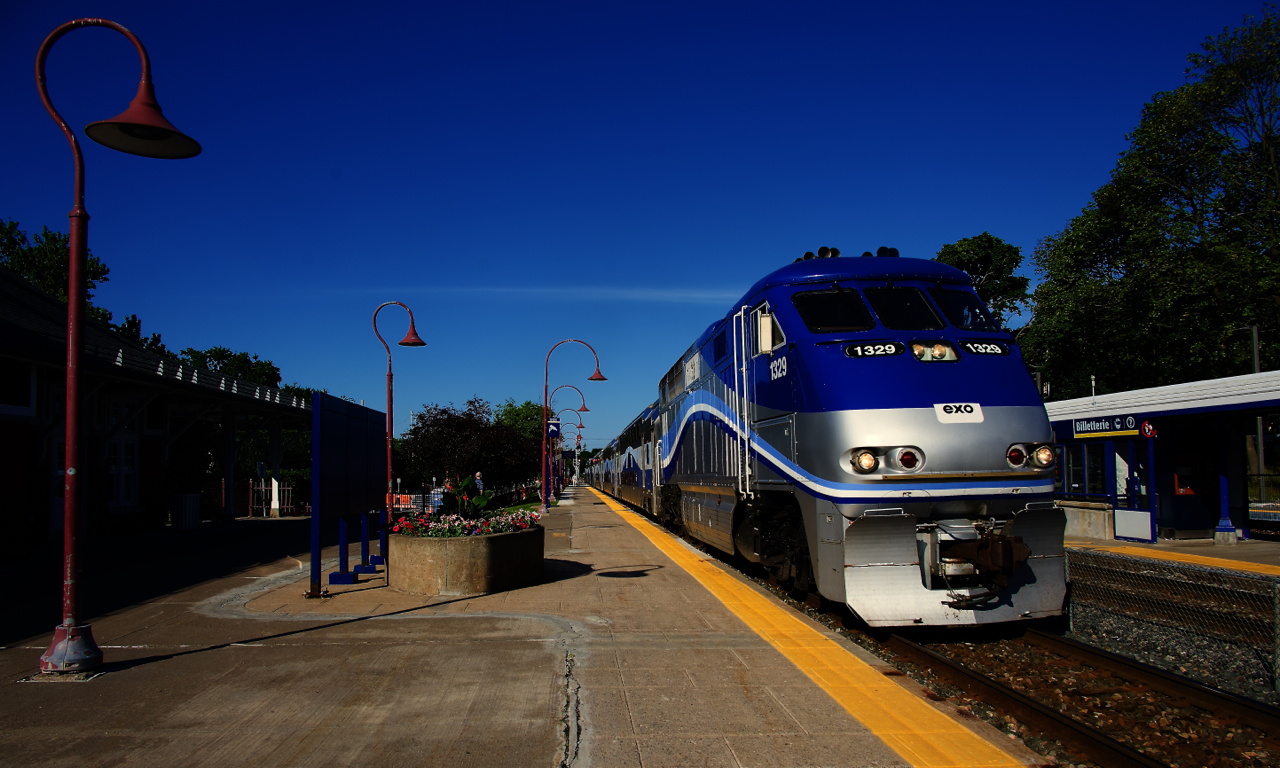 Caption: EXO 16 from Vaudreuil is arriving at Montreal West Station with an F59PHI for power. With Lucien L'Allier Station closed due to reconstruction work, all Vaudreuil/Hudson and Candiac trains are terminating at Vendôme Station.