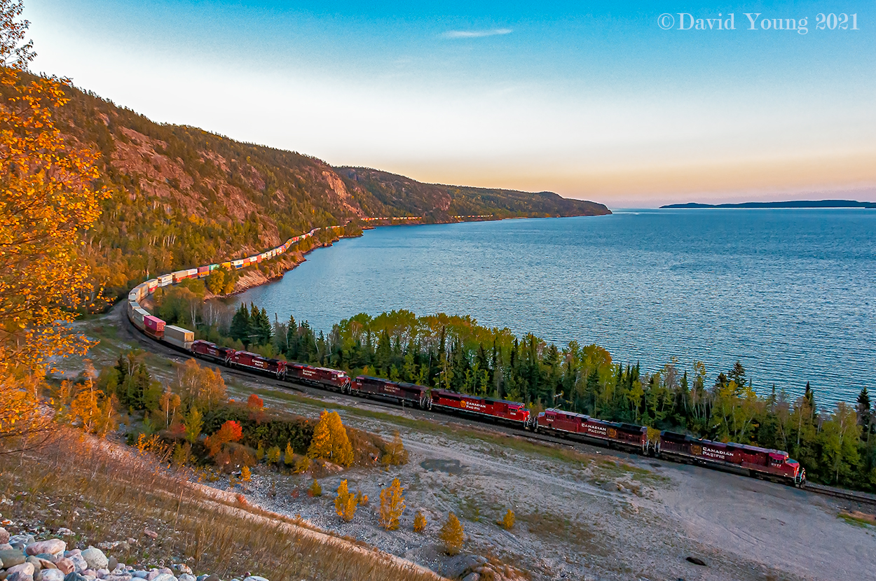 Caption: Another memorable day out on the Nipigon Sub with my good friend Kyle. It had been a few years since the two of us teamed up to foam the Thunder Bay area and this day we picked up as if we never left. Train 112 had been held most of the day in Thunder Bay, just being shy of 12,000' and unable to meet 113, who also was just shy of the 12,000' mark. Once they got going they were informed they would meet 101-28 at Firehill, who was still an hour and a half east of Schreiber. We followed 112 to Nipigon where Kyle and I sprung over to Cavers. It's been close to 11 years since the two of us had shot from the old pit along the shores of Lake Superior and needless to say neither one of us recalled it being that difficult to ascend the steep sand face of the old pit. After what seemed as an eternity of taking one step forward, two steps back we both got into our respected spots. Sitting there "recovering", it was quite peaceful and relaxing. The squirrels playing amongst the foliage atop the pit, the gentle lap of the waves of Superior against the rocky shoreline. A calm breeze... but no sign of CP's hotshot. With them on duty over an hour and a half thoughts of "did we skip over him" went through my mind, as we had stopped to check a couple spots on the way over from Nipigon. After about 20 minutes a distant rumble could be heard. Perfect! It shouldn't be too much longer now.... how wrong I was. I forgot how clear you can hear a westbound coming out of Rossport/approaching Pays Plat. For close to 30 minutes the rumble grew louder than became more distant, all the while the sun continued to dip lower on the horizon. Keeping our eyes pealed out to the point waiting and praying for a glimpse of a headlight. Just as I checked my settings on my camera, Kyle yelled out to warn our prize was in sight and our efforts were about to be rewarded. Shutters snapped as we recorded CP 8011 West snaking along the rocky northern shores of Lake Superior. By the time the tailend of the the 10,000' hot shot had passed, the sun had set. We slid down the embankment and back to our car to return to TBay to grab a pint and pizza from our old haunt and to watch the Blue Jays contend for a wild card spot. - They didn't make it.