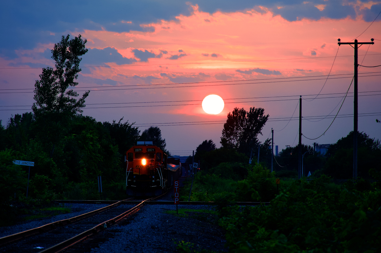 @awmooney, ironically I was leaving Valleyfield after chasing CN 327 when I saw a headlight by the diamond and chanced upon the CSX local. Later on the scanner I could hear CN 536 was on its way, so I stuck around long enough to get this shot.