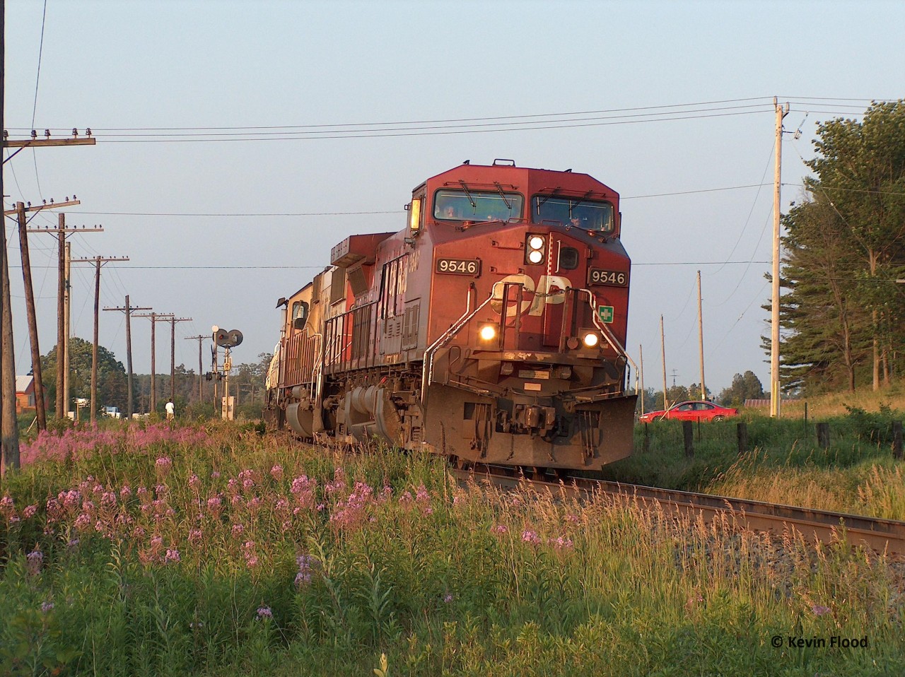 Back when the Galt Sub had more frequent afternoon/evening westbounds, CP 9546 heads a train (possibly CP 153/159 with those white tank cars up front followed by intermodal) west past Dumfries Rd. A SOO SD60 trailed. Based on the light, it looks like it was taken some time in the evening of a hazy/hot summer day.