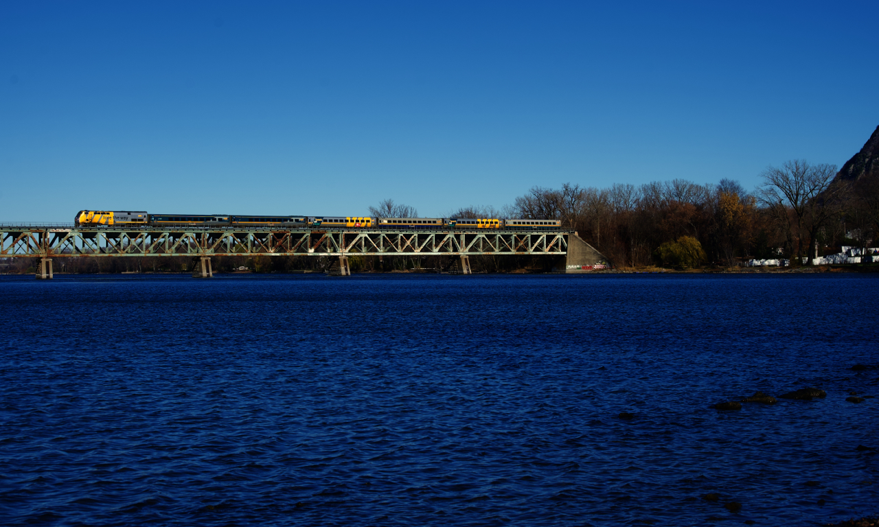 Caption: Starting this past weekend, VIA Rail began running running weekends-only VIA 624 and VIA 637 between Ottawa and Quebec City. Here VIA 624 has an LRC set as it crosses the Richelieu River, rare for a line that is normally 100% Siemens.