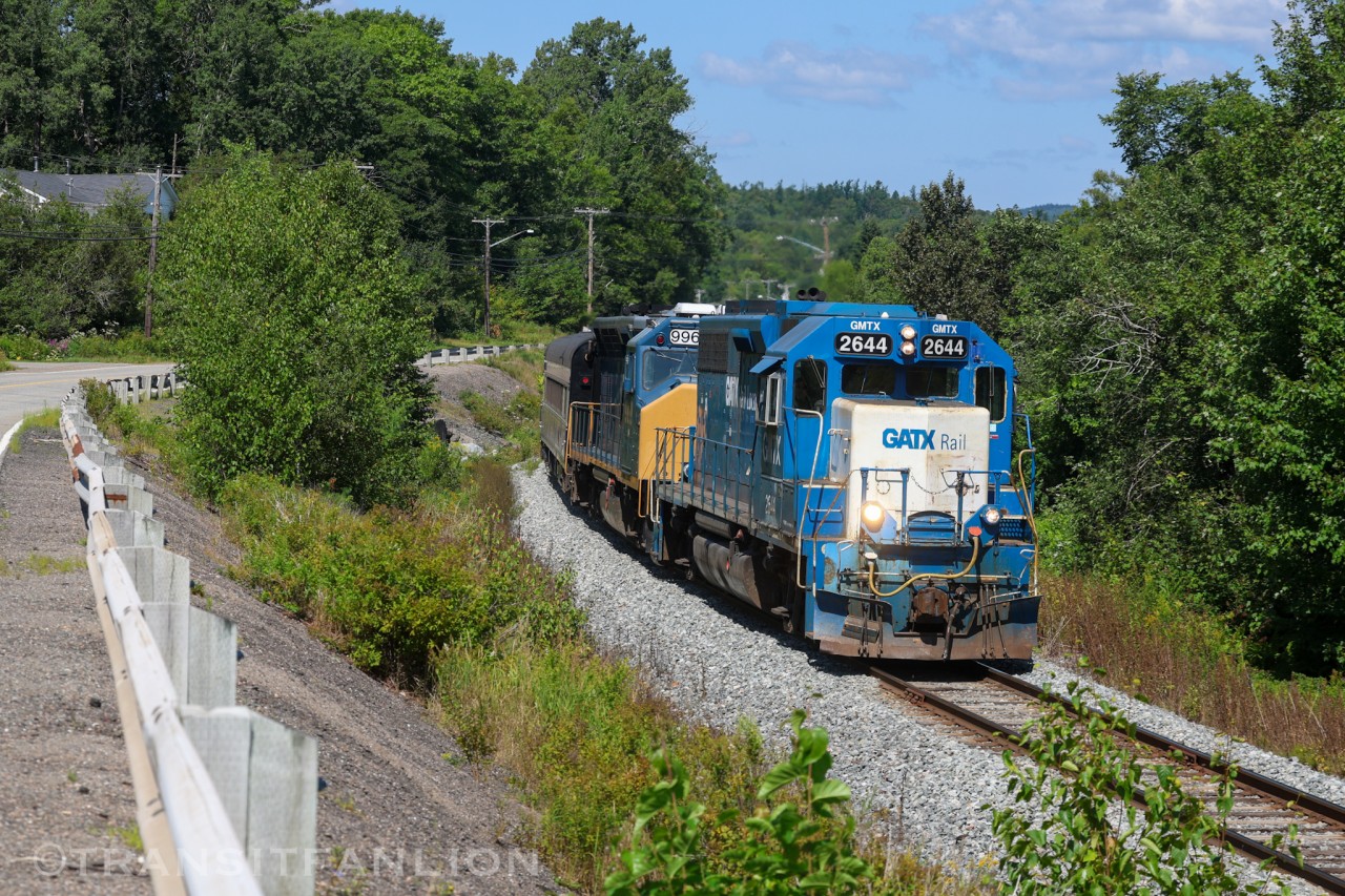 Caption: GMTX 2644 leading NBSR Work Extra with CSX geometry train, CSXT 9939 trailing, CSXT 994365 ‘Hocking Valley’ and CSXT TGC3 Track Geometry Car in tow, testing from McAdam, NB to Port of Saint John, NB.