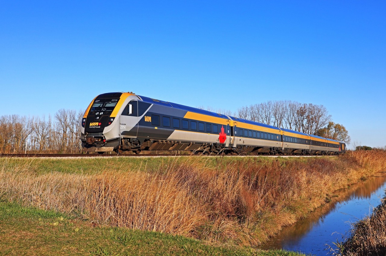 VIA 2314, with Toronto to Windsor train 73, cruises through Stoney Point Ontario, mile 80.5 on the Chatham Sub.